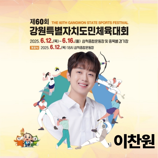 뜨거운 여름, 강원도를 대표하는 대규모 스포츠 축제 ‘제60회 강원특별자치도민체육대회’가 오는 6월 12일 삼척에서 화려하게 막을 연다. 특히 올해 개회식에는 가수 이찬원이 무대에 올라 뜨거운 축제 분위기를 더욱 고조시킬 예정이어서 많은 팬들과 지역 주민들의 기대를 모으고 있다.