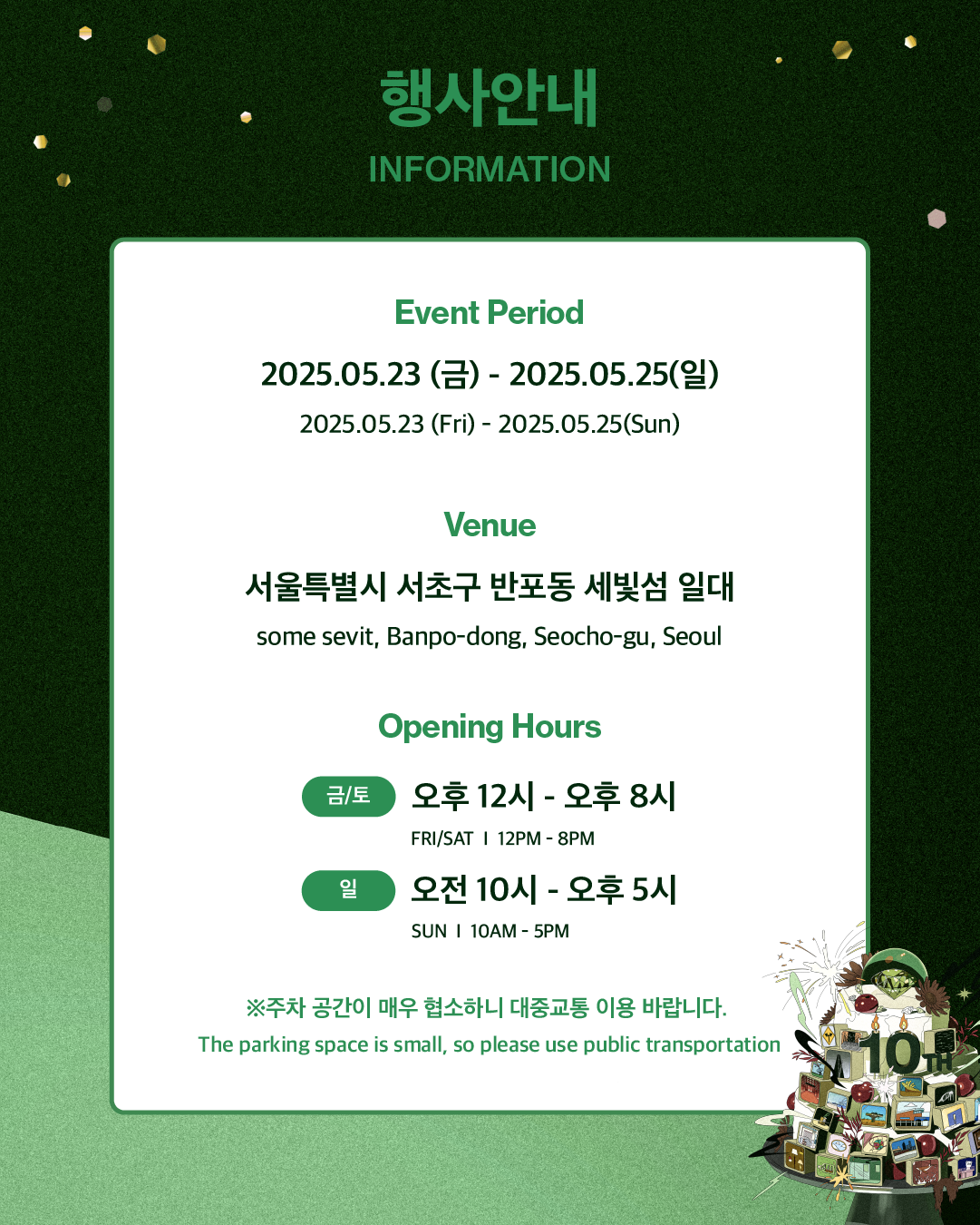 - 포토카드 교환소: 스탬프 투어 완주 시 10주년 스페셜 포토카드 제공